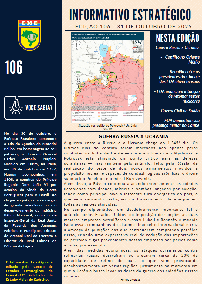 v. 11 n. 106 (2025)Informativo Estratégico é elaborado e editado pelo Centro de Estudos Estratégicos do Exército-CEEEX / 7ª Subchefia do Estado-Maior do Exército.