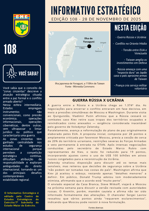v. 11 n. 108 (2025)Informativo Estratégico é elaborado e editado pelo Centro de Estudos Estratégicos do Exército-CEEEX / 7ª Subchefia do Estado-Maior do Exército.