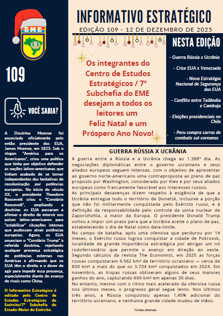 v. 11 n. 86 (2025)O Informativo Estratégico é editado pelo Centro de Estudos Estratégicos do Exército / 7ª S Ch EME.